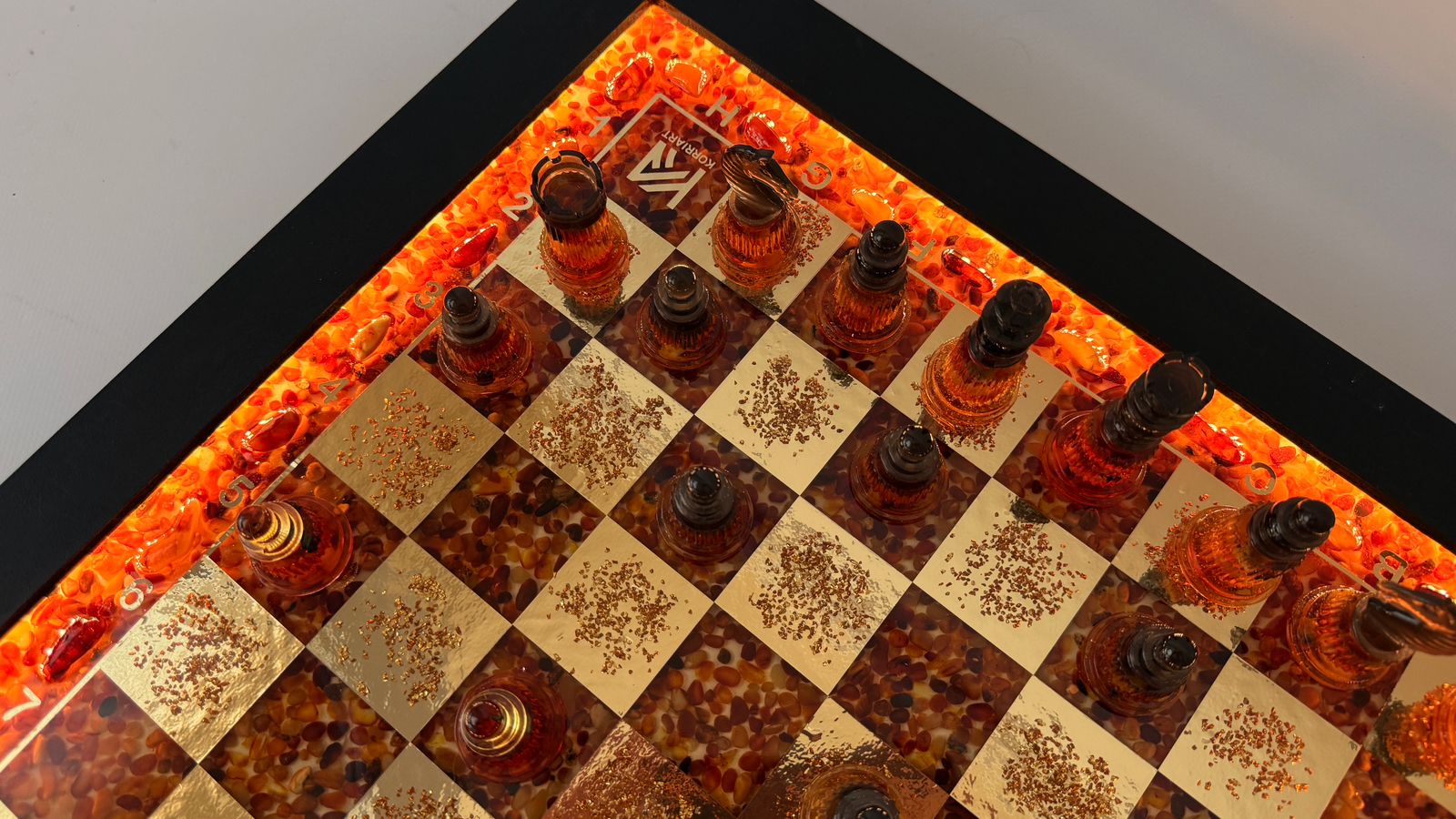 Колекційні шахи з епоксидної смоли, кедру та бурштину у вигляді Айсбергу “Бурштинова Легенда”
